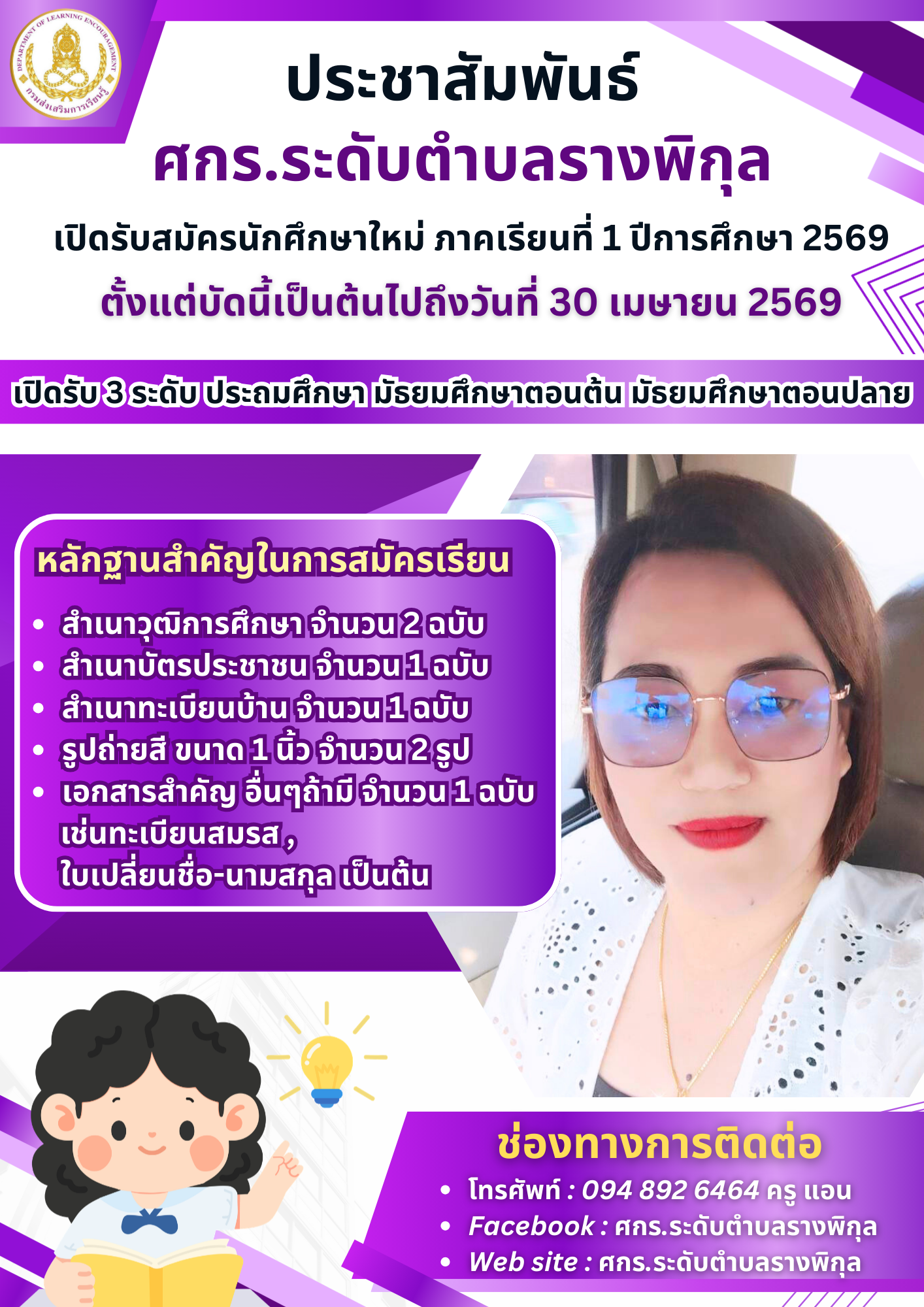 พระพันปีหัวเวปอธิบดีวันสภาประชาสัมพัน พระราชประวัติ สมเด็จพระบรมราชชนนีพันปีหลวง วิธีการสอนทำริบบิ้นไว้อาลัย สกร.พร้อมรับมือภัยพิบัติ ประชาสัมพันธ์รับสมัครนักศึกษาใหม่ ภาคเรียนที่ 1 ปีการศึกษา 2569 ประชาสัมพันธ์ วันอาทิตย์ที่ 8 กุมภาพันธ์ 2569 อย่าลืมออกไปใช้สิทธิ์เลือกตั้ง ข่าวประชาสัมพันธ์ ประชาสัมพันธ์ Thailand Zero Dropout Posted on17 February 202617 February 2026 0 โครงการประชุมเชิงปฏิบัติการฝึกอบรมการใช้งานระบบสารสนเทศ Thailand Zero Dropout ครู ศกร.ระดับตำบลรางพิกุล เข้าร่วมโครงการประชุมเชิงปฏิบัติการฝึกอบรมการใช้งานระบบสารสนเทศ Thailand Zero Dropout วันที่ 12-13 กุมภาพันธ์ 2569 ณ วิทยาลัยการอาชีพบางแก้วฟ้าอำเภอนครชัยศรี จังหวัดนครปฐม จัดโดยสำนักงานศึกษาธิการจังหวัดนครปฐม ประชาสัมพันธ์ Elementor #1341 Posted on4 September 20254 September 2025 0 ข่าวประชาสัมพันธ์ วันที่ 17 สิงหาคม 2568 ได้รับมอบหมายจาก ผอ.สกร.ระดับอำเภอกำแพงแสน ให้นำ นักศึกษา สกร.ระดับอำเภอกำแพงแสน เข้าร่วมกิจกรรมเปิดโลกการเรียนรู้ สร้างอนาคตการศึกษาไทย กรมส่งเสริมการเรียนรู้ ณ มหาวิทยาลัยกรุงเทพธนบุรี ประชาสัมพันธ์ Elementor #1324 Posted on4 September 20254 September 2025 0 ข่าวประชาสัมพันธ์ ศกร.ระดับตำบลรางพิกุล นำนักศึกษา เข้าร่วมกิจกรรมกีฬาสี ณ ตำบลทุ่งขาง ประชาสัมพันธ์ Elementor #1312 Posted on4 September 20254 September 2025 0 ข่าวประชาสัมพันธ์ 28 กรกฎาคม 2568 ครู ศูนย์การเรียนรู้ ได้รับมอบหมายจาก ผอ.สกร.ระดับอำเภอกำแพงแสน ให้เข้าร่วมกิจกรรมเฉลิมพระเกียรติพระบาทสมเด็จพระเจ้าอยู่หัว เนื่องในโอกาสวันเฉลิมพระชนพรรษา ณ วัดประชาราษฎร์บำรุง ข่าวสารบ้านเมือง กิจกรรม สื่อการสอน หน่วยงานที่เกี่ยวข้อง