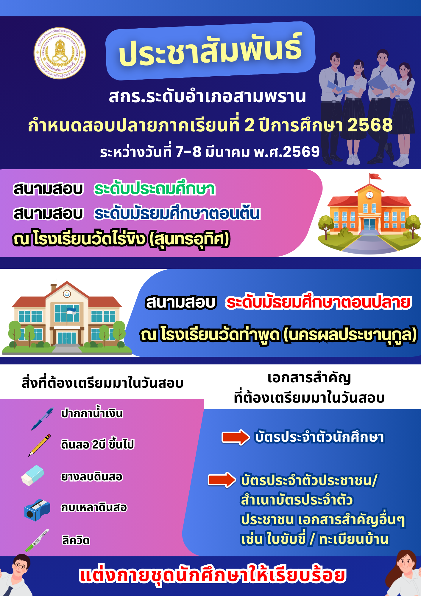 พระพันปียินดีต้อนรับรัฐมนตรีอธิบดีสถาปนากรมรับสมัครระบบช่วยเหลือ Lorem ipsum dolor sit amet, consectetur adipiscing elit. Ut elit tellus, luctus nec ullamcorper mattis, pulvinar dapibus leo. พระราชประวัติ สมเด็จพระบรมราชชนนีพันปีหลวง วิธีการสอนทำริบบิ้นสำหรับไว้อาลัย ชื่อผลงาน : HERO Life Shield : โล่ป้องกันชีวิตฮีโร่ ศูนย์ส่งเสริมการเรียนรู้ระดับอำเภอสามพราน ได้พัฒนานวัตกรรมการดำเนินงานภายใต้ชื่อ “HERO Life Shield : โล่ป้องกันชีวิตฮีโร่”ซึ่งเป็นแนวทางการดำเนินงานเชิงระบบในการเสริมสร้างทักษะชีวิต (Life Skills) และภูมิคุ้มกันทางจิตใจให้แก่ผู้เรียน เพื่อป้องกันและแก้ไขปัญหายาเสพติดและอบายมุขอย่างยั่งยืน นวัตกรรมดังกล่าวมุ่งเน้นการพัฒนาผู้เรียนให้มีความรู้ ความเข้าใจ มีทักษะในการคิดวิเคราะห์ การตัดสินใจ การแก้ไขปัญหา และการจัดการอารมณ์อย่างเหมาะสม พร้อมทั้งส่งเสริมให้ผู้เรียนมีคุณลักษณะอันพึงประสงค์ มีจิตสำนึกในการปฏิเสธสิ่งเสพติด และสามารถดำรงชีวิตอยู่ในสังคมได้อย่างปลอดภัยและมีคุณภาพ ประชาสัมพันธ์ สกร.ระดับอำเภอสามพราน กำหนดสอบปลายภาคเรียนที่ 2 ปีการศึกษา 2568 วันที่ 7-8 มีนาคม 2569 ประชาสัมพันธ์ สกร.ระดับอำเภอสามพราน กำหนดสอบ N-NET ภาคเรียนที่ 2 ปีการศึกษา 2568 วันที่ 14 - 15 กุมภาพันธ์ 2569 ประชาสัมพันธ์ วันอาทิตย์ที่ 8 กุมภาพันธ์ 2569 อย่าลืมออกไปใช้สิทธิ์เลือกตั้ง ประชาสัมพันธ์ วันอาทิตย์ที่ 11 มกราคม 2569 อย่าลืมไปใช้สิทธิเลือกตั้ง สกร.พร้อมรับมือภัยพิบัติ ประชาสัมพันธ์ ข่าวสาร ศกร.ระดับตำบลสามพราน 0 ข่าวประชาสัมพันธ์ โครงการค่ายอบรมอาสายุวกาชาดนอกโรงเรียน Posted on26 กุมภาพันธ์ 202626 กุมภาพันธ์ 2026 0 ข่าวประชาสัมพันธ์ Thailand Zero Dropout Posted on17 กุมภาพันธ์ 202617 กุมภาพันธ์ 2026 0 ข่าวประชาสัมพันธ์ ข่าวประชาสัมพันธ์ Posted on11 ธันวาคม 202511 ธันวาคม 2025 0 ข่าวประชาสัมพันธ์ ข่าวเด่น Posted on21 สิงหาคม 202521 สิงหาคม 2025 0 ข่าวประชาสัมพันธ์ ข่าวประชาสัมพันธ์ Posted on3 กรกฎาคม 20253 กรกฎาคม 2025 0 ข่าวประชาสัมพันธ์ ข่าวประชาสัมพันธ์ Posted on24 พฤษภาคม 202526 พฤษภาคม 2025 Previous Next กิจกรรมส่งเสริมการอ่านแบบออนไลน์ วันดินโลกวันรัฐธรรมนูญวันครูวันตรุษจีนวันวาเลนไทน์วันรักการอ่านวันสงกรานต์วันฉัตรวันพืชมงคลวันวิสาขบูชาวันแม่วันสุนทรภู่วันต่อต้านยาเสพติดวันอาสาฬหบูชาวันพ่อ Lorem ipsum dolor sit amet, consectetur adipiscing elit. Ut elit tellus, luctus nec ullamcorper mattis, pulvinar dapibus leo. ข่าวสารบ้านเมือง กิจกรรม สื่อพอดีคำ หน่วยงานที่เกี่ยวข้อง สกร.ระดับอำเภอสกร.ระดับจังหวัดสกร.ภาคกลางกรมกระทรวง Lorem ipsum dolor sit amet, consectetur adipiscing elit. Ut elit tellus, luctus nec ullamcorper mattis, pulvinar dapibus leo.