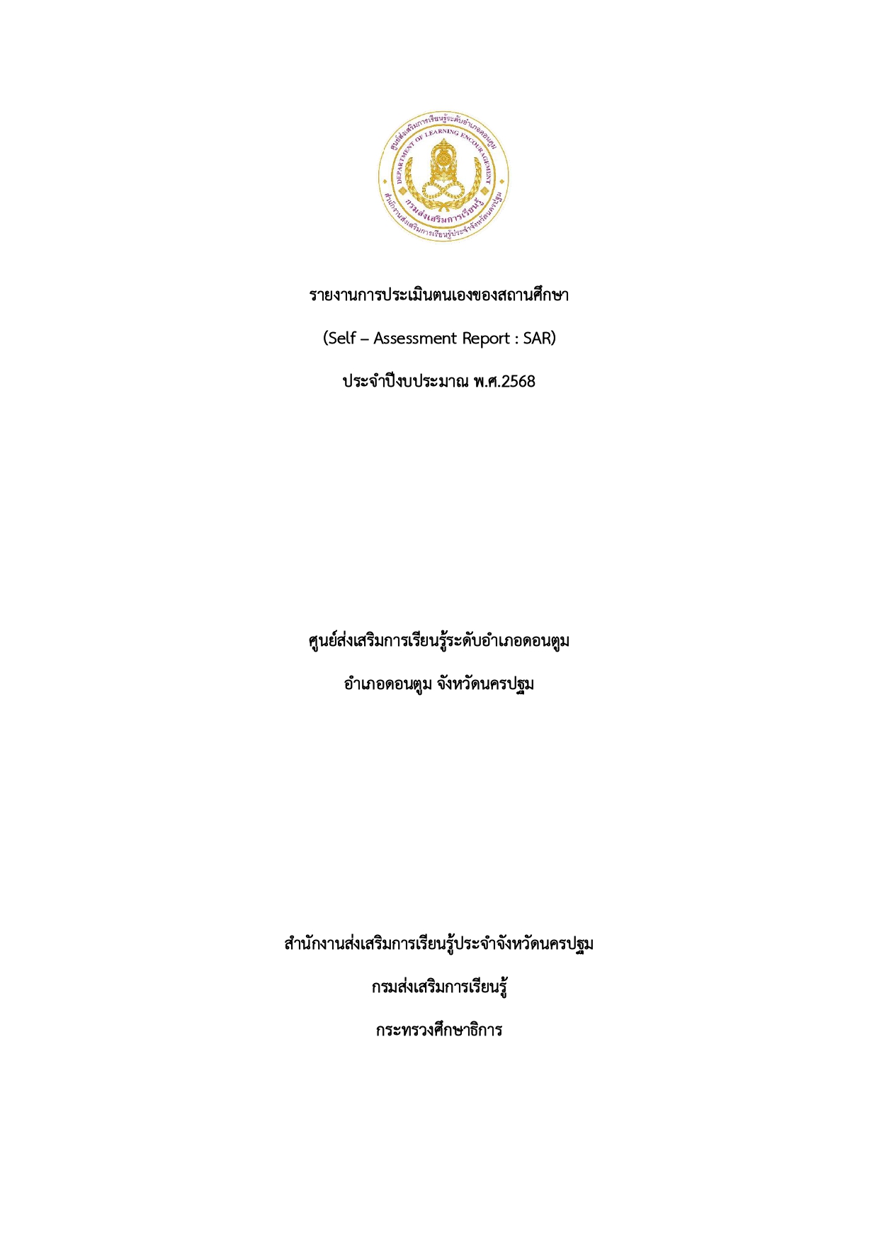 มาตรฐานและประเมินคุณภาพการศึกษา การประเมินตนเองของสถานศึกษา (SAR) ประจำปี 2568 การประเมินตนเองของสถานศึกษา (SAR) Click here สกร.ระดับอำเภอเมืองนครปฐมระดับคุณภาพ ยอดเยี่ยม Click here สกร.ระดับอำเภอกำแพงแสนระดับคุณภาพ ยอดเยี่ยม Click here สกร.ระดับอำเภอนครชัยศรีระดับคุณภาพ ยอดเยี่ยม Click here สกร.ระดับอำเภอดอนตูมระดับคุณภาพ ยอดเยี่ยม Click here สกร.ระดับอำเภอบางเลนระดับคุณภาพ ยอดเยี่ยม Click here สกร.ระดับอำเภอสามพรานระดับคุณภาพ ยอดเยี่ยม Click here สกร.ระดับอำเภอพุทธมณฑลระดับคุณภาพ ยอดเยี่ยม Click here ศกภ (วิทยาลัยในวัง)ระดับคุณภาพ ยอดเยี่ยม การประเมินคุณภาพการศึกษาโดยต้นสังกัด Click here สกร.ระดับอำเภอเมืองนครปฐมระดับคุณภาพ ยอดเยี่ยม Click here สกร.ระดับอำเภอกำแพงแสนระดับคุณภาพ ยอดเยี่ยม Click here สกร.ระดับอำเภอนครชัยศรีระดับคุณภาพ ยอดเยี่ยม Click here สกร.ระดับอำเภอดอนตูมระดับคุณภาพ ยอดเยี่ยม Click here สกร.ระดับอำเภอบางเลนระดับคุณภาพ ยอดเยี่ยม Click here สกร.ระดับอำเภอสามพรานระดับคุณภาพ ยอดเยี่ยม Click here สกร.ระดับอำเภอพุทธมณฑลระดับคุณภาพ ดีเลิศ Click here รายงานการสังเคราะห์การประเมินคุณภาพการศึกษาโดยต้นสังกัด การประเมินคุณภาพภายนอก (สมศ.) Click here สกร.ระดับอำเภอเมืองนครปฐมระดับคุณภาพ ดี Click here สกร.ระดับอำเภอกำแพงแสนระดับคุณภาพ ดี Click here สกร.ระดับอำเภอนครชัยศรีระดับคุณภาพ ดี Click here สกร.ระดับอำเภอดอนตูมระดับคุณภาพ ดี Click here สกร.ระดับอำเภอบางเลนระดับคุณภาพ ดี Click here สกร.ระดับอำเภอสามพรานระดับคุณภาพ ดี Click here สกร.ระดับอำเภอพุทธมณฑลระดับคุณภาพ ดี